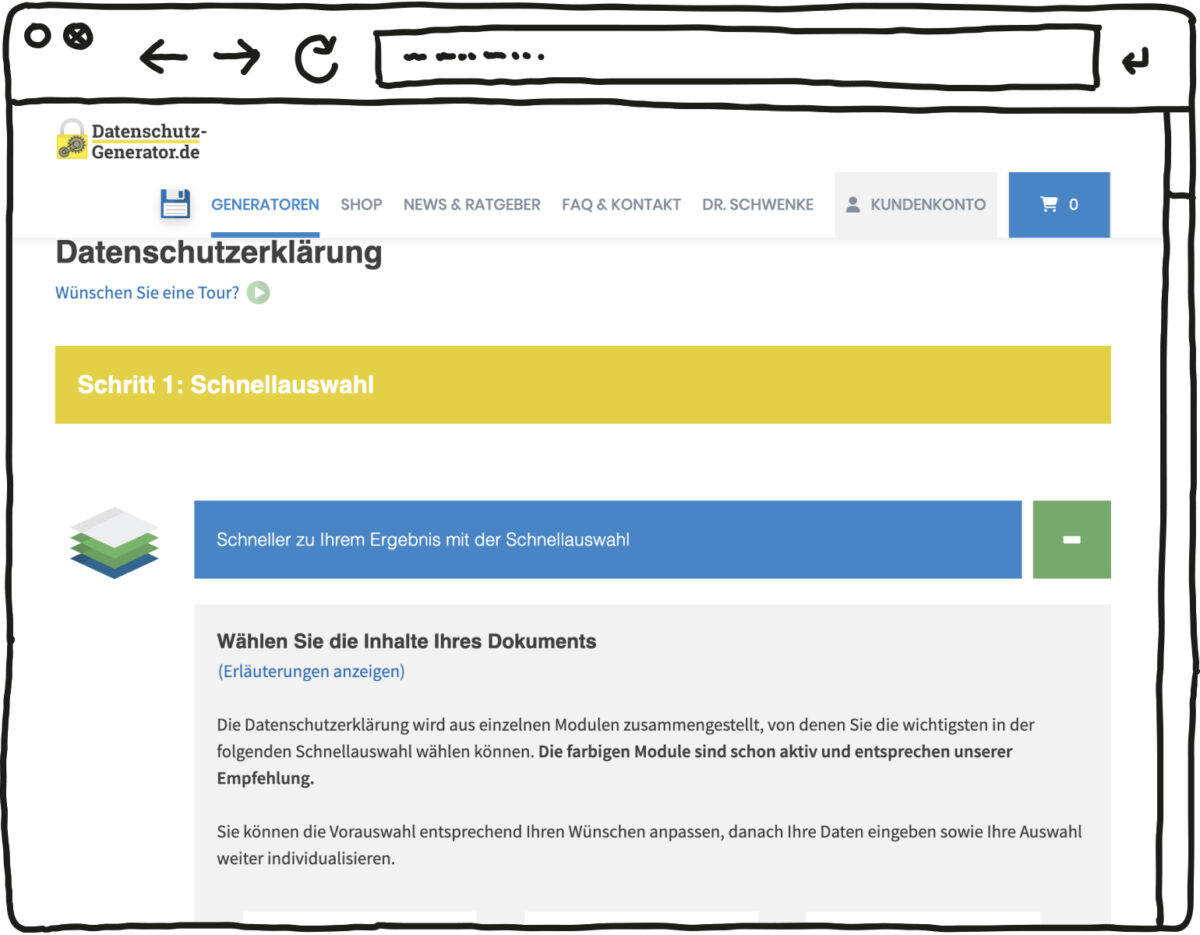 Einige Generatoren scannen deine Website auch automatisch und erkennen so, welche für den Datenschutz relevanten Punkte berücksichtigt werden müssen.