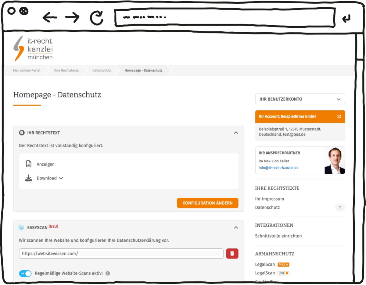 Die besten Anbieter scannen deine Website zudem auf Datenschutz-Problematiken, unterstützen automatische Updates der Rechtstexte, haben eine Cookie-Banner-Lösung inklusive, und bieten auch rechtliche Beratung.