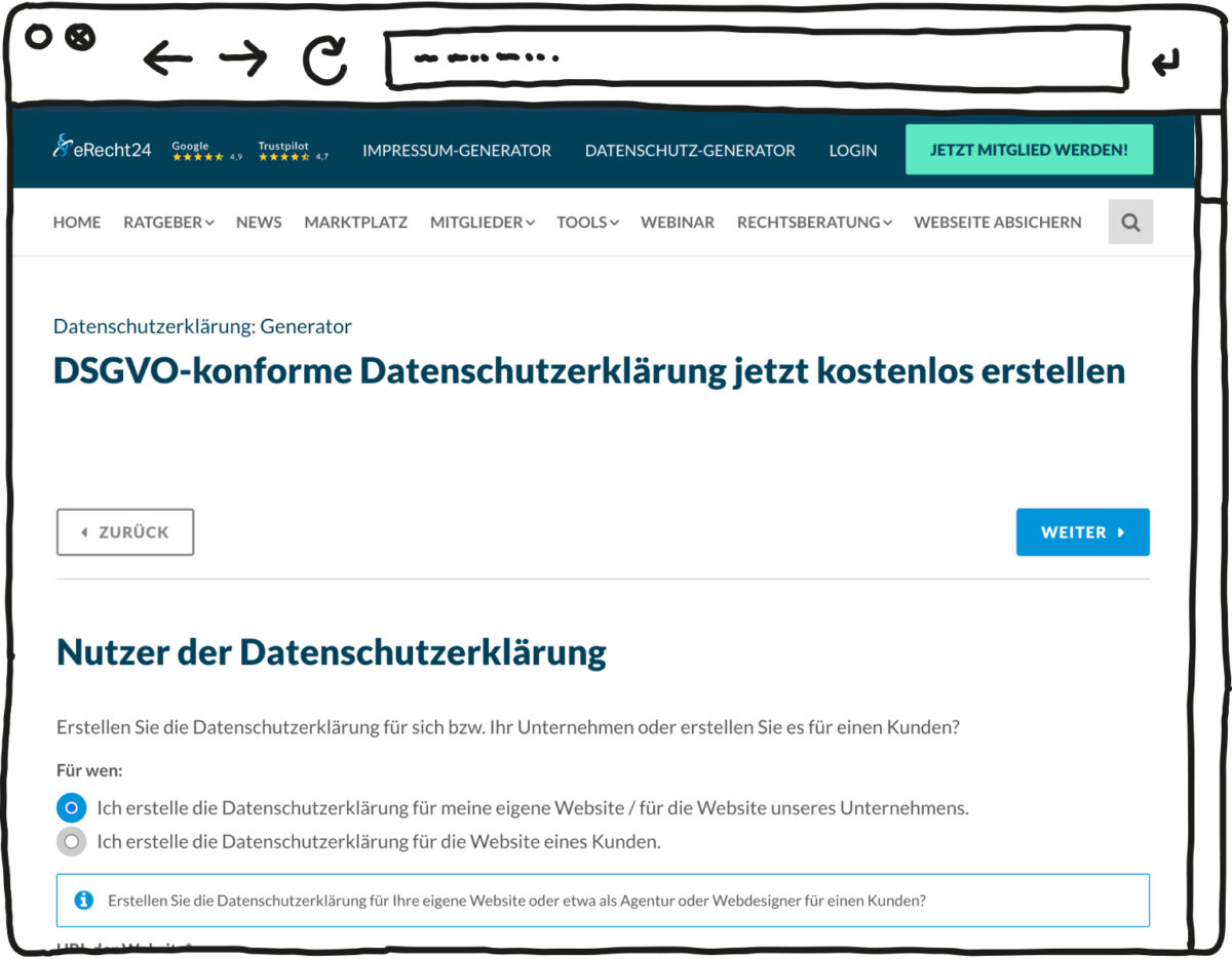 Anbieter von spezialisierten Datenschutz-Lösungen bieten Generatoren, mit denen du passgenaue Datenschutzerklärungen erstellen kannst – egal ob Firmenwebsite, Blog oder Online-Shop.